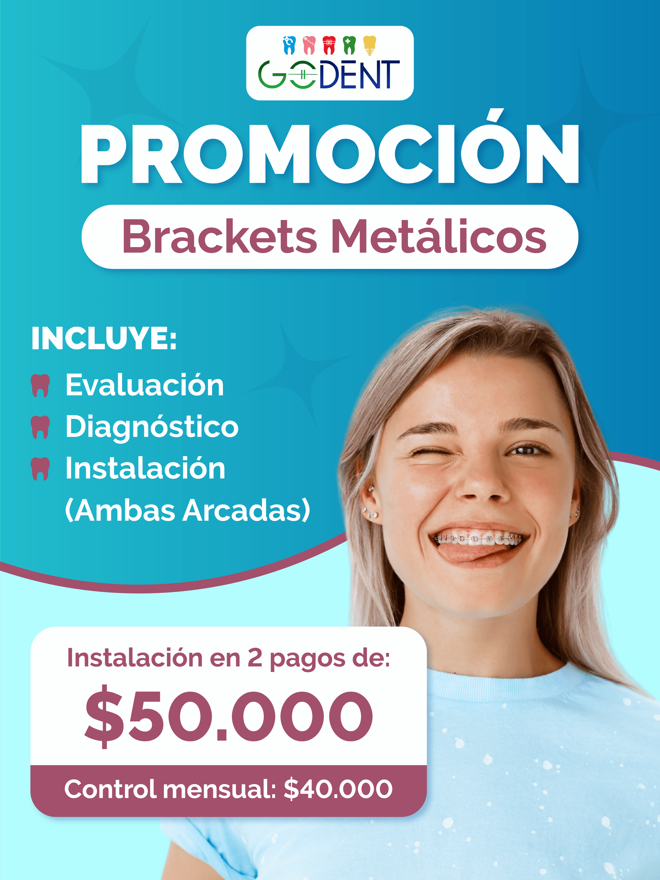 √ El principal beneficio que tienen los brackets metálicos, es que nos permiten corregir cualquier tipo de problemas de: alineación, mordida y posición.