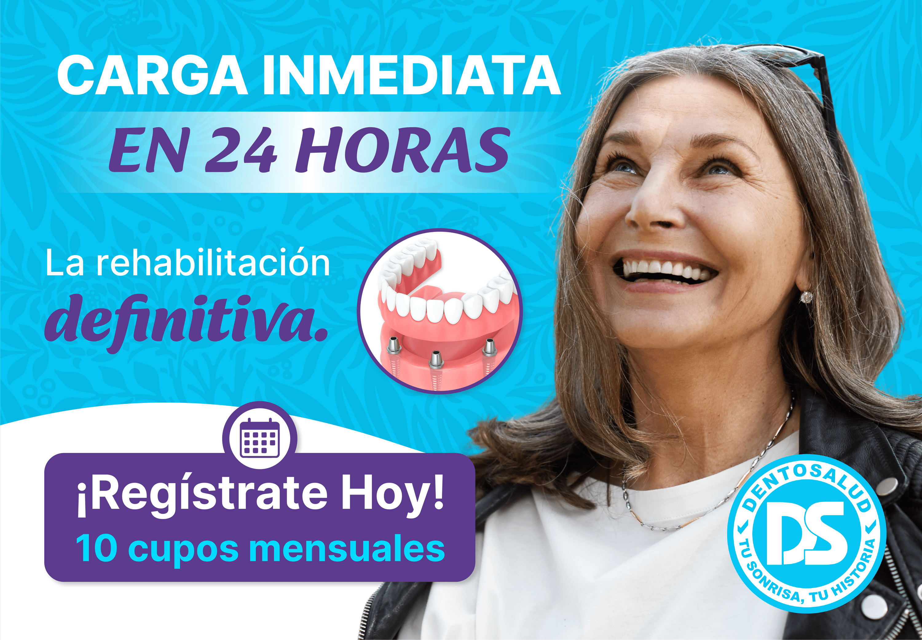Este tratamiento es una alternativa de rehabilitación inmediata para pacientes desdentados totales o parciales, mediante prótesis fijas sobre implantes, empleando la técnica de "Carga Inmediata Definitiva” y técnicas de implantología avanzada, como son “All on Four” o “All on X”.